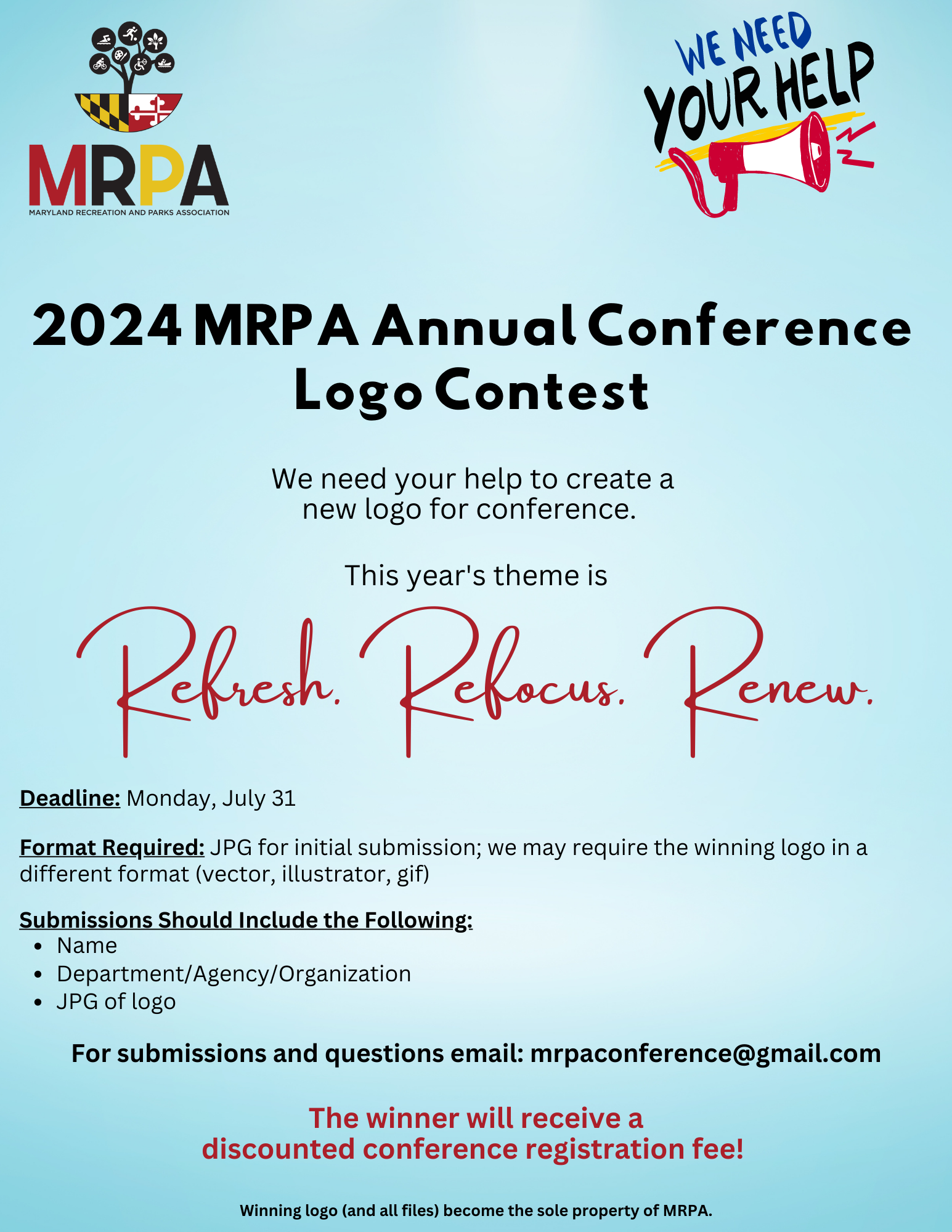 The Conference Committee has started planning for the 2024 MRPA Annual Conference but we need your help. We need a logo to match this year's theme "Refresh. Refocus. Renew."